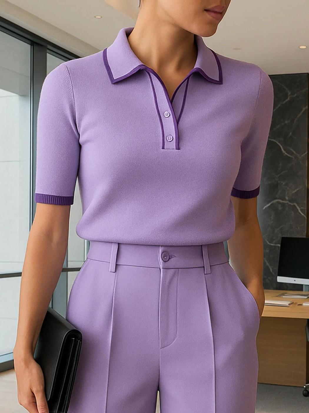 Sweaters | Urban Color Block Buttoned Polo Collar Knit Top – Women